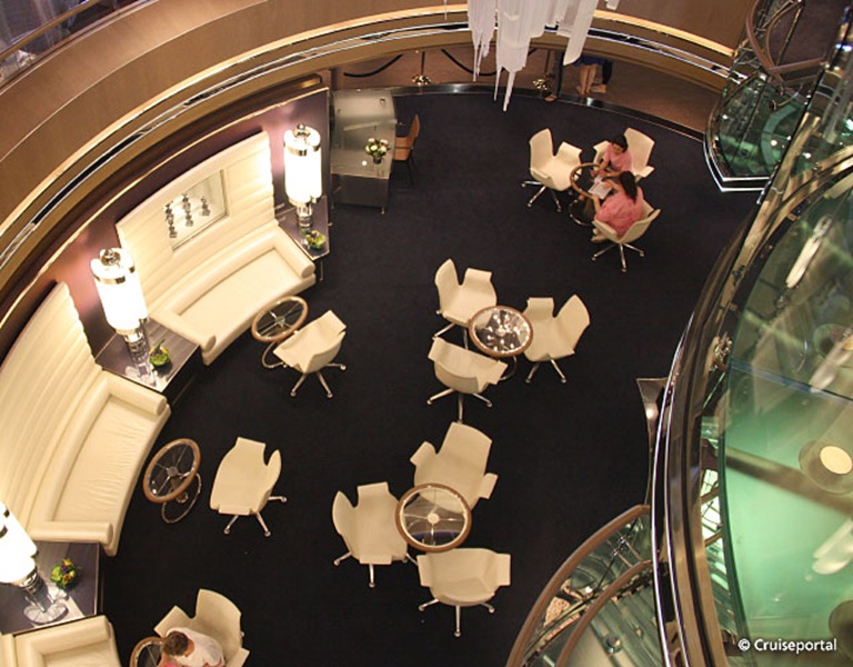 The Atrium is always the heart of any Holland America Line ship. It's physically in the center of the ship, spanning three decks and surrounded by some of the most heavily frequented spots on the Nieuw Amsterdam including Guest Services, the Future Cruises Desk, The Pinnacle Bar and Pinnacle Grill, and the Ocean Bar.