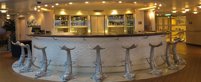 If nothing else, Lido Bar (midships port side Deck 9 - Lido Deck) on the Nieuw Amsterdam should go down in history as having what look like the most uncomfortable seats at any bar in the known universe. Clearly, the designer who thought it would be clever to have all the barstools be cast metal fish, with the tail of the fish splaying out to provide the perching spot for all the aging and substantial backsides of the Nieuw Amsterdam passengers deserves a special place in Hell.