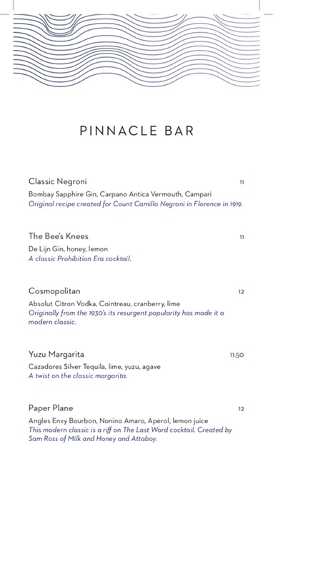 The Pinnacle Bar (midships starboard Deck 2 - Lower Promenade Deck) is adjacent to, but not within the Pinnacle Grill, so it can be a good place to get a beverage or have a conversation whether or not you are dining at the Pinnacle Grill.