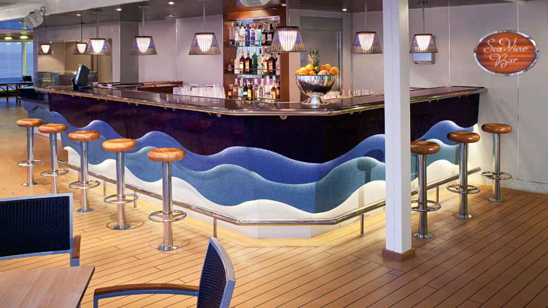 Like Lido Bar, Sea View Bar (aft starboard Deck 8 - Lido Deck) is less a gathering spot than a resource for waiters bringing drinks to passengers eating in Lido Market or enjoying the Sea View Pool.