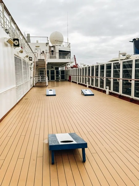 You can also play basketball (half-court) and kick around a soccer ball in addition to Pickleball as well as those seafaring standards, Shuffleboard and Cornhole. Personally, I'll be sticking to shuffleboard.