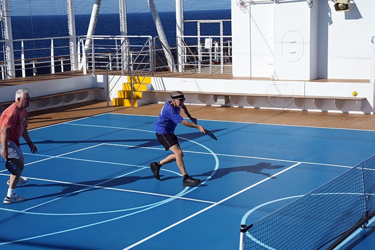 The Sport Court (aft Deck 11 - Observation Deck) allows guests to play pickleball on multiple courts with incredible (and distracting) ocean views.