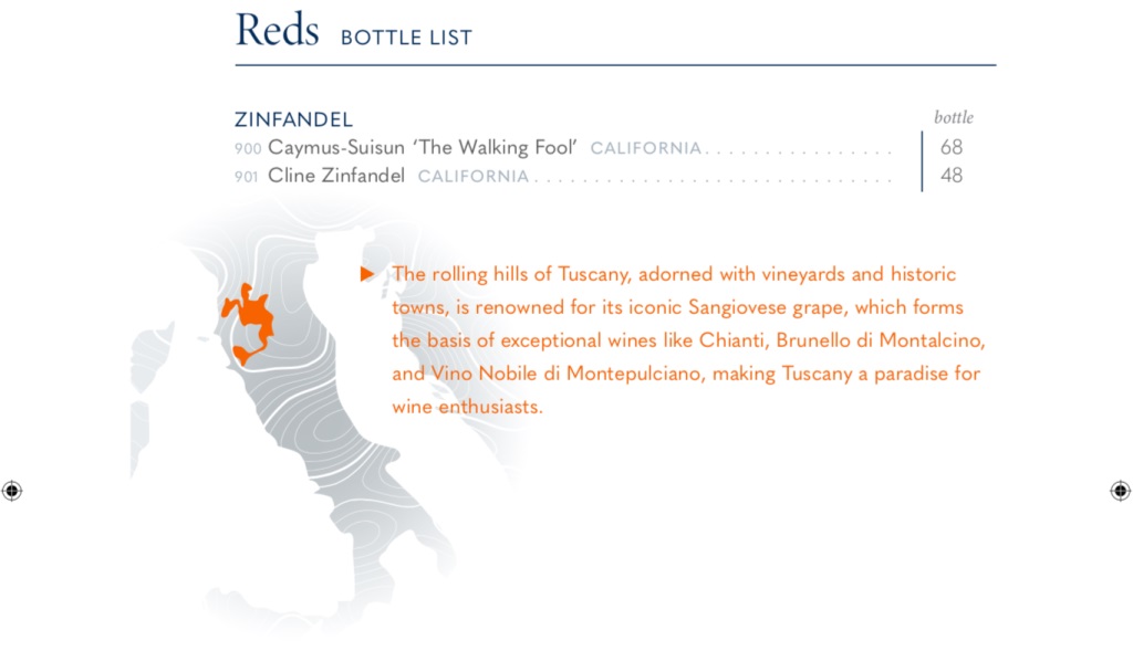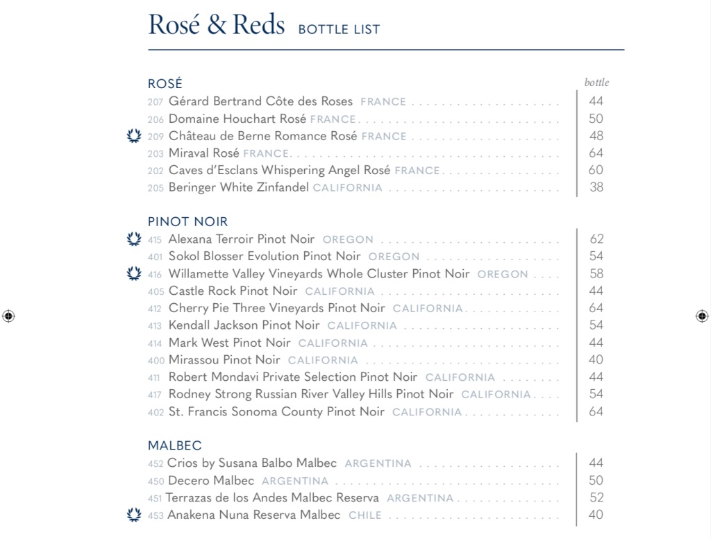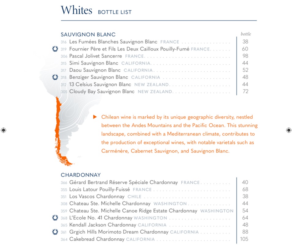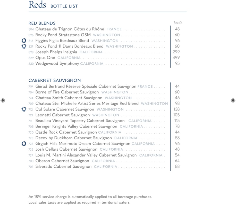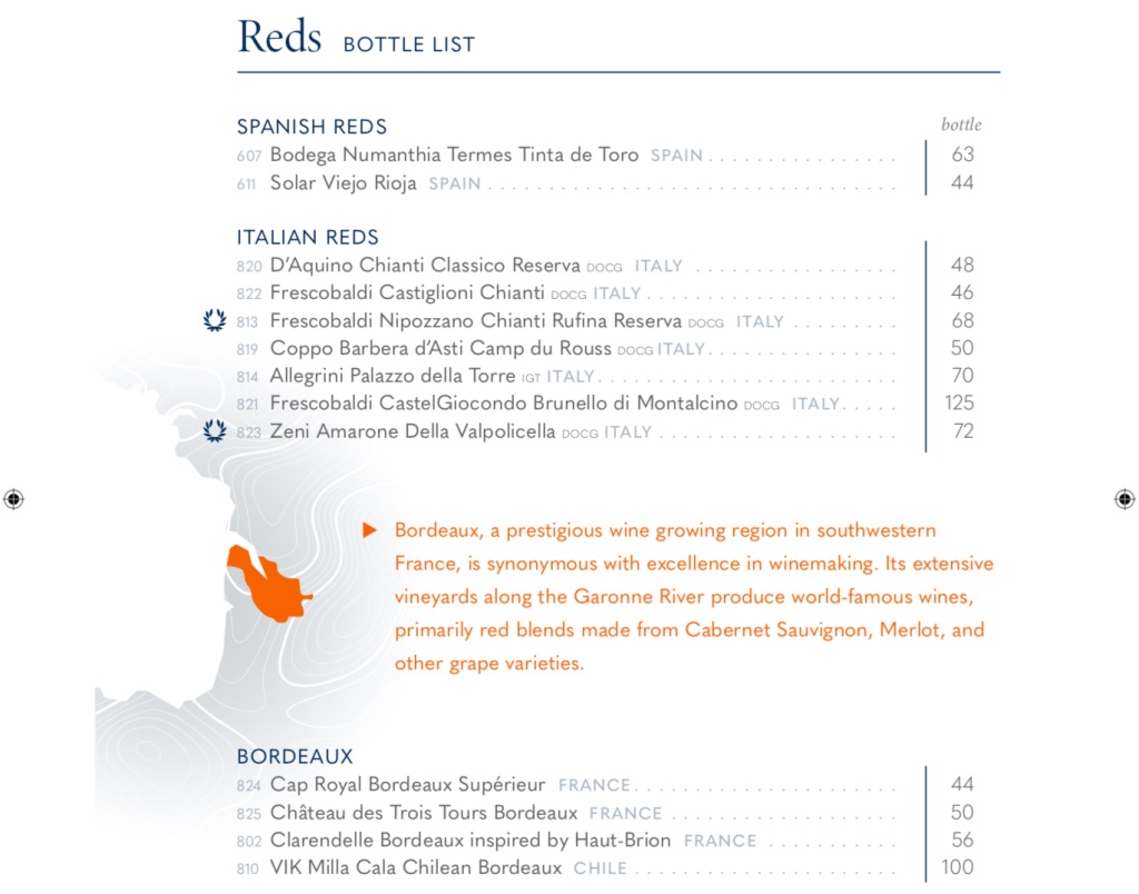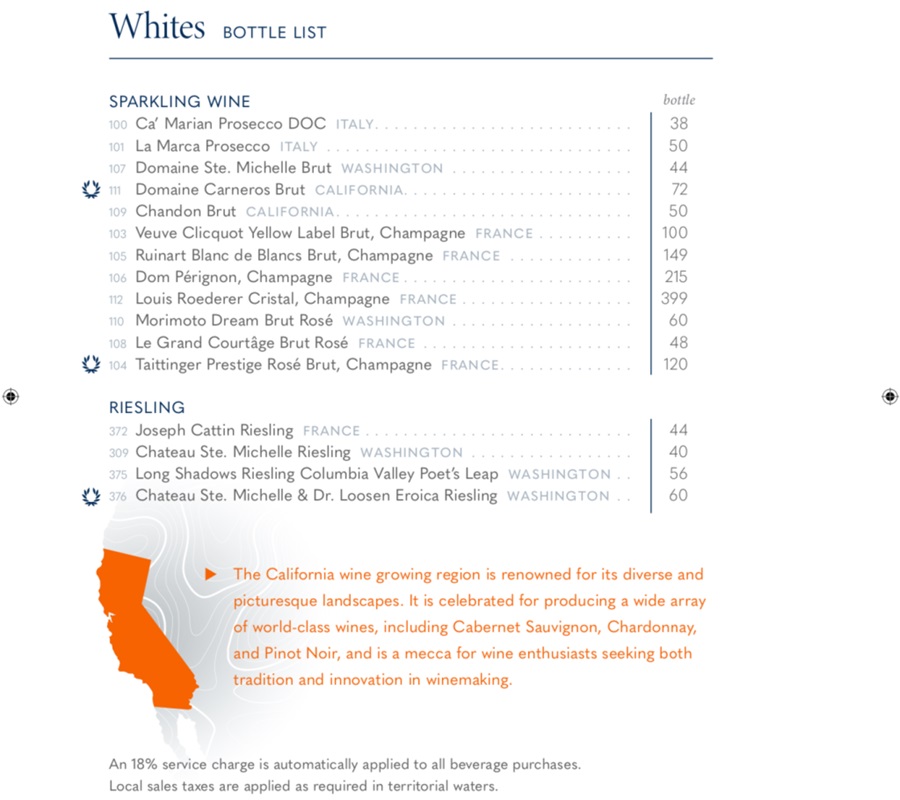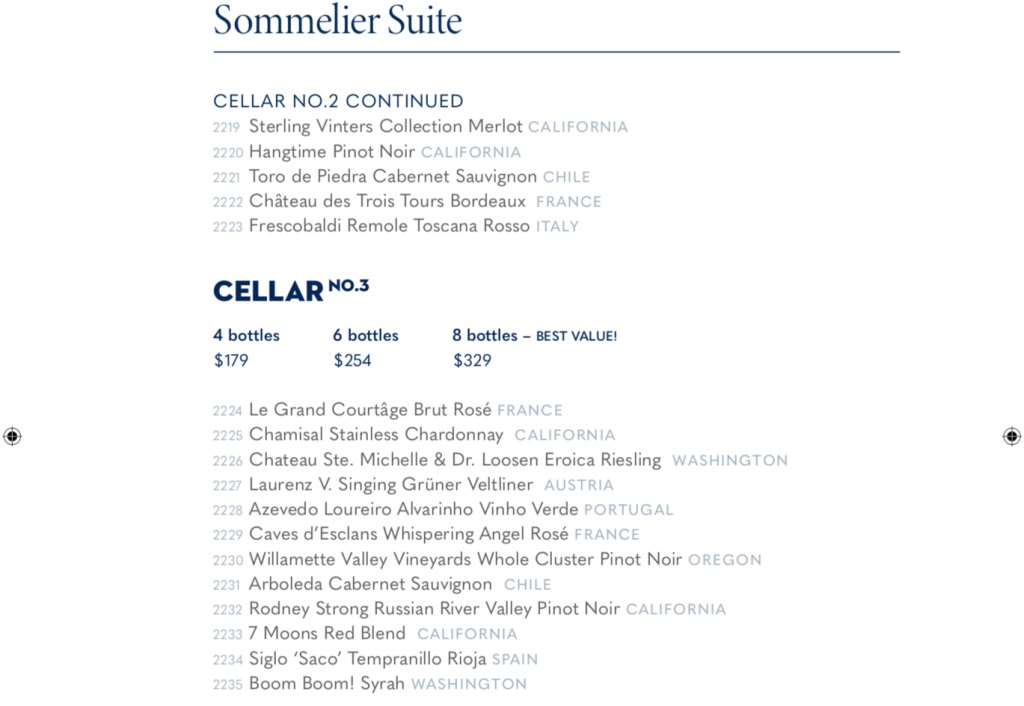 Below the menus, you will find the Holland America Wine List. As with the photos and menus, click on any segment to see the full gallery of large images of the thirteen parts of the Wine List.