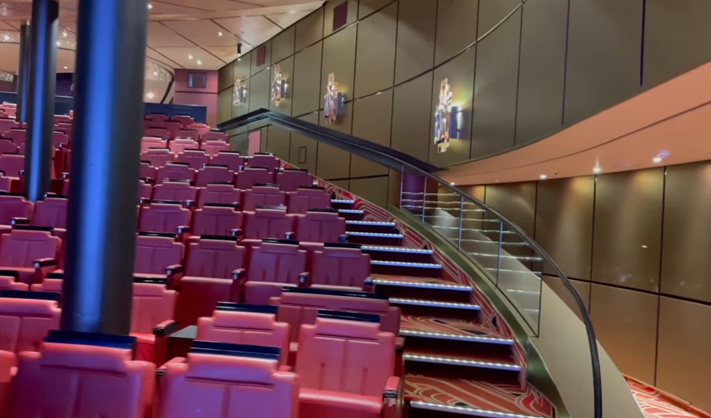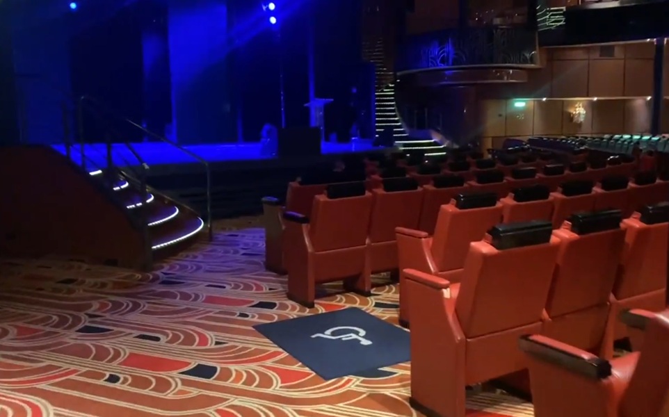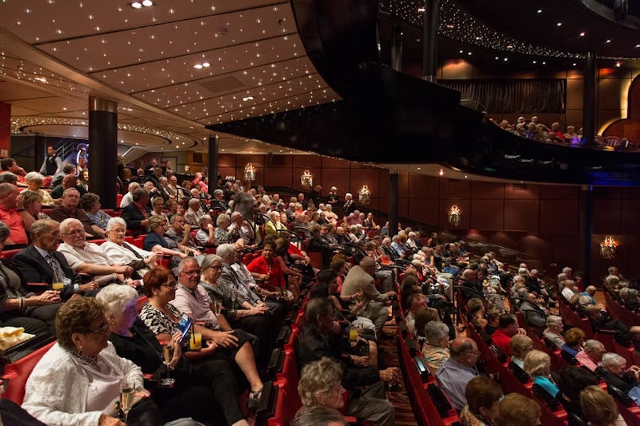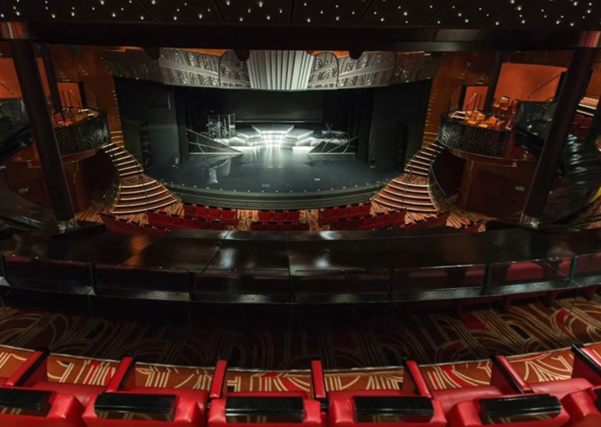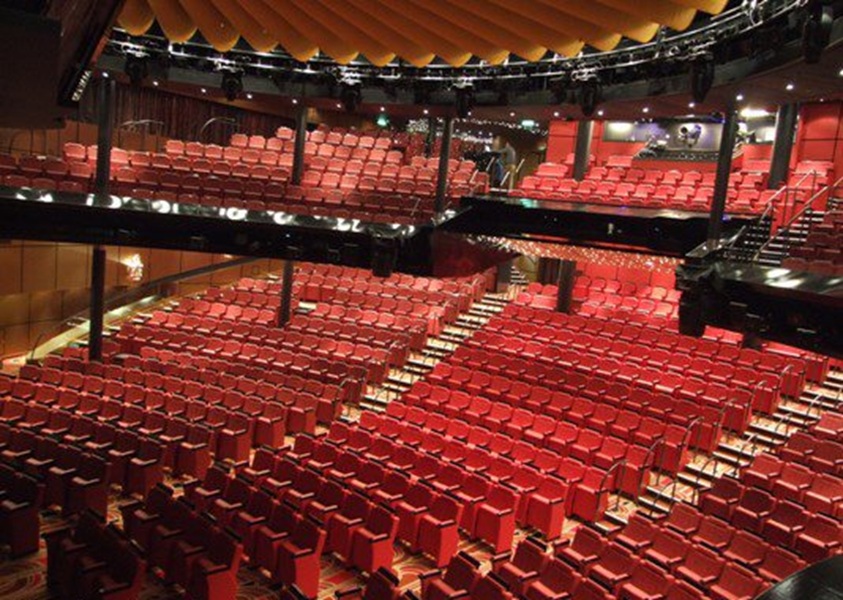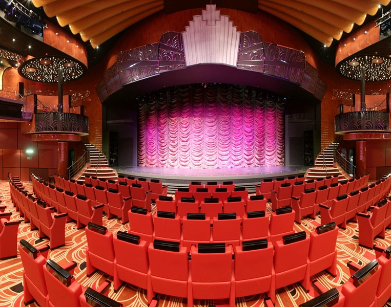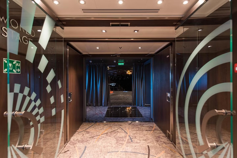 The World Stage (forward Deck 1 - Main Deck, Deck 2 - Lower Promenade Deck, and Deck 3 - Promenade Deck) is by far the largest performing venue on the Nieuw Amsterdam, seating 890 people at a show. In addition to housing the nightly entertainment performance, it's also used for Holland America's enrichment program of lectures and talks on sea days.
